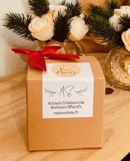 La boite cadeau en carton kraft et son petit noeud pour emballer vos bougies 35 et 45h avant de les offrir. Pour orner la fermeture de la boite, une étiquette autocollante "Maison SteSa" est fournie.
