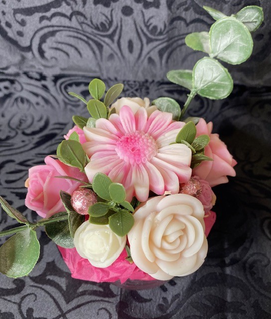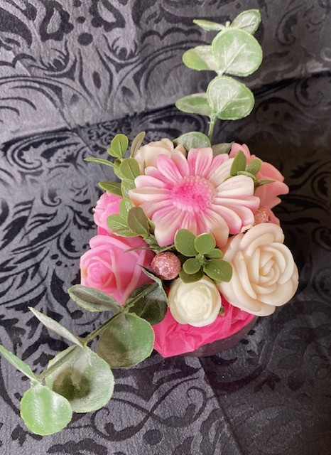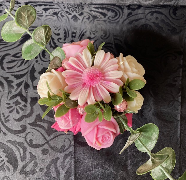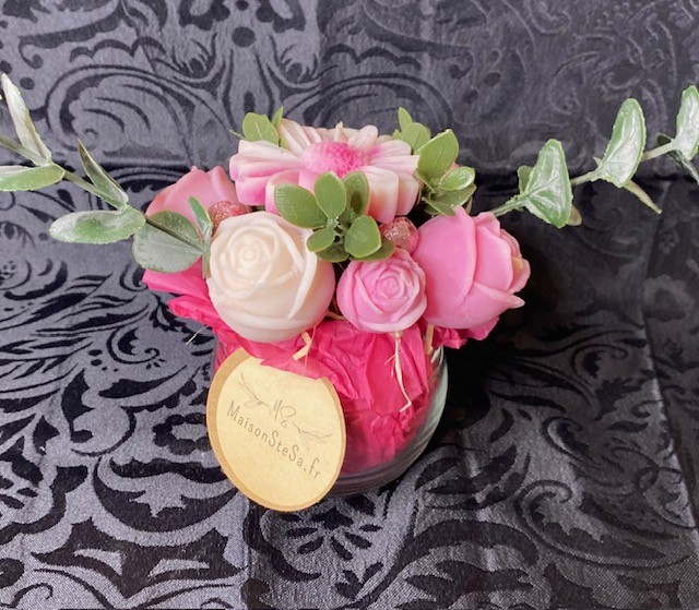 Le bouquet se compose de 5 gros fondants parfumés et 3 petits, en forme de fleurs.