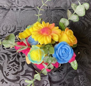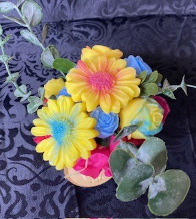 Le bouquet se compose de 5 gros fondants parfumés et 3 petits, en forme de fleurs.