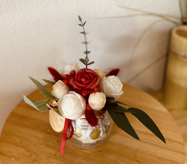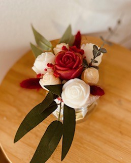 Le bouquet de fondants de la St Valentin se compose de 5 gros fondants parfumés en forme de fleur et 3 petits.