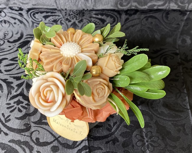 Les fondants se conservent mieux dans une boite hermétique. Ils sont composés de cire 100% végétale d'olive, de parfums de grasse sans émanations toxiques (ni CMR (cancérigène, mutagène, reprotoxique), ni phtalates), ni matières animales. Nous les colorons avec des micas naturels.
